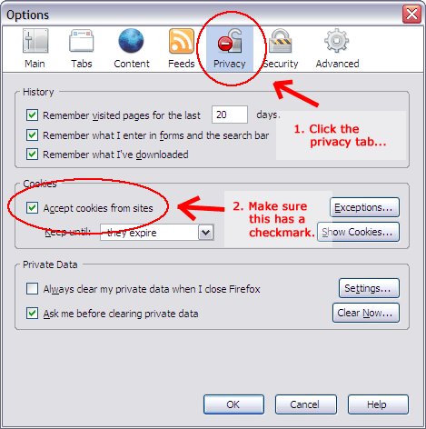 To enable cookies in Firefox...